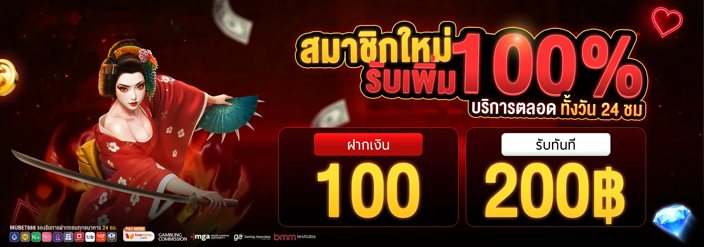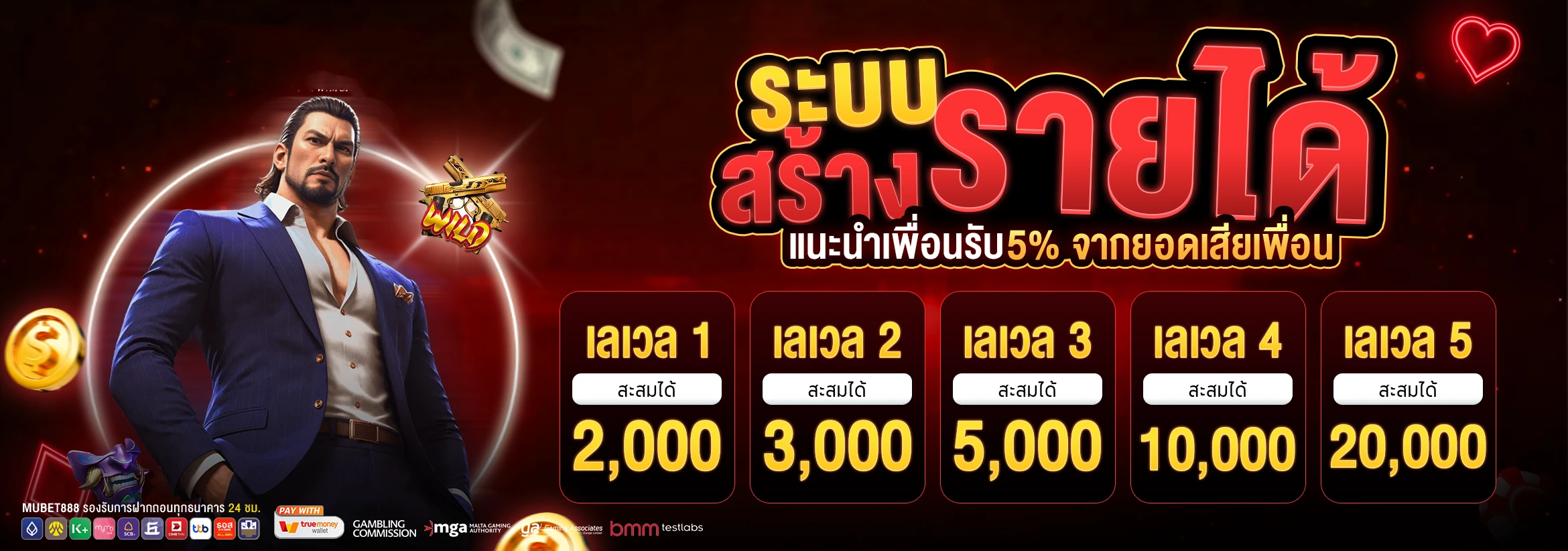 เริ่มต้นด้วยโบนัสต้อนรับสมาชิกใหม่ที่มาแรงที่สุด นั่นคือโบนัส 100% สำหรับการฝากครั้งแรก สูงสุดถึง 5,000 บาท เพียงสมัครสมาชิกและทำการฝากเงินขั้นต่ำ 100 บาท คุณก็จะได้รับเครดิตเพิ่มทันที ยิ่งไปกว่านั้น ยังมีโปรโมชั่นคืนยอดเสีย 10% ทุกสัปดาห์ ไม่มีเงื่อนไขยอดเทิร์น ให้คุณได้โอกาสกอบโกยกำไรกลับคืนมา